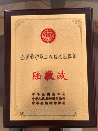 近日,第六屆“全國維護(hù)職工權(quán)益杰出律師”表彰暨服務(wù)農(nóng)民工公益法律服務(wù)行動啟動儀式在京舉行,10位杰出律師受到表彰。上海江三角律師事務(wù)所主任陸敬波成功入選,成為上海唯一一位入選的律師。