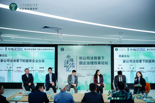 第一場圓桌論壇由上海市金茂律師事務所合伙人吳穎主持,上海和歸律師事務所主任江海、中智股份法務與合規部副部長翁浩青、北京大成(上海)律師事務所合伙人王棟、上海建工集團法務部副主任茹曉春、外灘投資集團總法律顧問張雅斌作為嘉賓參與圓桌分享,與會嘉賓從國有企業法務和律師的不同視角,探討了國有企業合規問題。