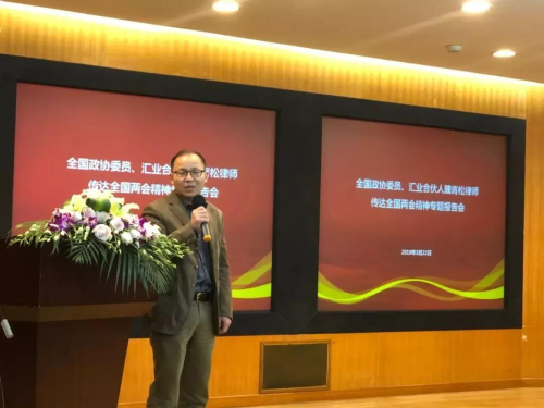 報告會上,魏青松律師對全國政協(xié)十三屆二次會議的概況、政協(xié)職能、大會發(fā)言等情況做了簡要概述。他結(jié)合自己參會的切身體會,向全體與會人員傳達了全國政協(xié)會議的會議精神,大會指出,2019年是中華人民共和國成立暨全國人民政協(xié)成立70周年,要堅決擁護中共中央關(guān)于加強黨的政治建設(shè)等重要決策部署,要把堅持黨的全面領(lǐng)導(dǎo);堅持雙向發(fā)力;堅持提質(zhì)增效、堅持正風肅紀四個特點貫徹到各方面。