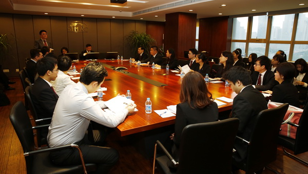 模擬仲裁庭后,香港大律師公會代表團還分別參觀了北京金杜律師事務所上海分所及上海市錦天城律師事務所。金杜所上海分所合伙人江寄鷗、陳青東、胡梅、傅軼接待了代表團。他們介紹了金杜所從1993年成立至今的發展歷程,并與代表團就滬港兩地公司并購,資本市場等具體問題進行了深入的交流。錦天城所主任吳明德,合伙人陳乃蔚、沈國權、裘索、郭重清接待了代表團。他們首先介紹了錦天城的基本情況,然后雙方就兩地知識產權法律服務的發展情況,兩地律師與法官的執業轉換,兩地律師人才的合作培養及香港資深大律師資格的取得進行了深入的交流。