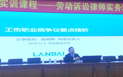 上午第二場分享主講人為上海藍白律師事務所錢明輝律師。錢律師從工傷保險、工傷認定、勞動能力鑒定及工傷待遇四個維度,結合案例,生動講解了工傷職業病爭議中涉及的主要內容。