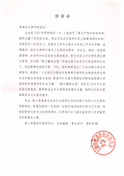 堅決維護婦女兒童權益,堅持公益普法,黃浦區女律師聯誼會將秉持初心,一如既往做出自己的努力,貢獻自己的力量!