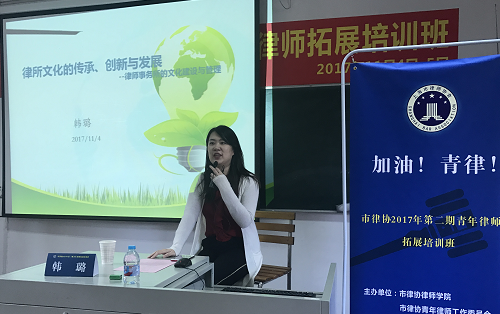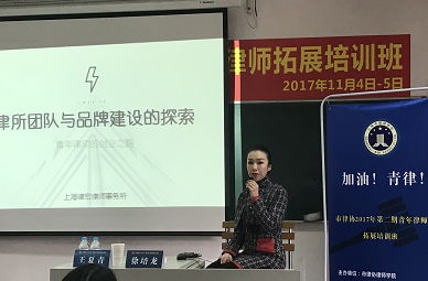 11月5日上午,上海市律師協會青年律師工作委員會委員、上海律宏律師事務所主任王夏青律師分享《律所團隊與品牌建設的探索》。