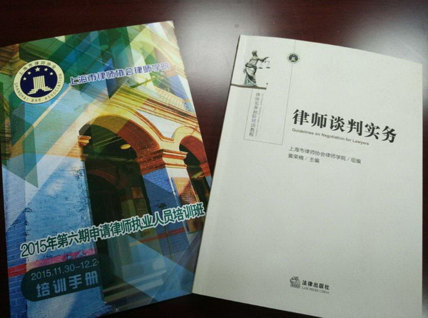 2015年12月4日《律師談判實務》作為律師學院校本教材首次在申請律師執業人員培訓班啟用。本教材是由市律協律師學院組編,市律協理事、君合律師事務所上海分所顧問黃榮楠律師主編,法律出版社出版。本教材也是市律協律師學院自行編撰的第七本校本教材。