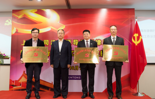10月17日下午,在黨的十九大召開前夕,上海市司法局黨委書記、局長陸衛東一行調研律師黨建工作,并召開座談會,為市司法局黨委首次評選出的三家市級律師行業黨建工作示范點授牌。