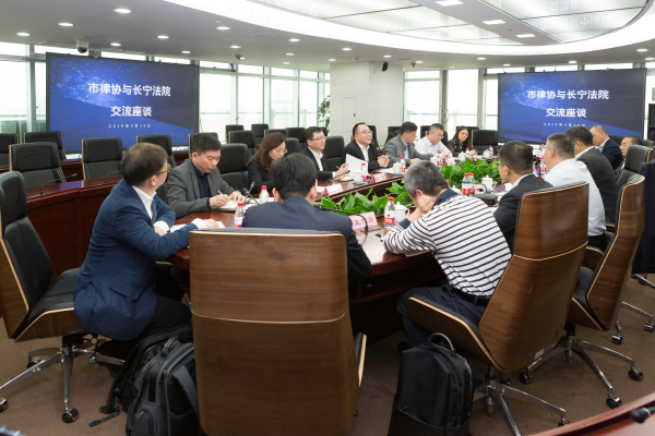 2019年4月19日上午,長寧區人民法院院長米振榮、副院長朱鐵軍、許凱等相關部門負責人一行來到市律協第一會議室開展交流座談。市律協會長季諾、副會長潘書鴻、副秘書長潘瑜、理事、互聯網業務研究委員會主任陳巍、商事爭議業務研究委員會主任倪偉、刑事業務研究委員會副主任王恩海、民事業務研究委員會副主任施克強、公司與商事業務研究委員會副主任屠磊、勞動法業務研究委員會副主任齊斌、社會公益與法律援助業務研究委員會副主任計時俊等參加了座談會。