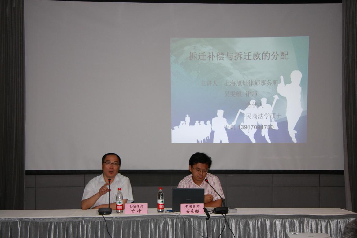 “旭燦講壇”第二彈《動拆遷法律講座(上)》由上海市旭燦律師事務所 菅峰主任律師主持,資深律師吳雯麒主講。針對上海城鎮房屋動拆遷法律實務進行普法活動。
