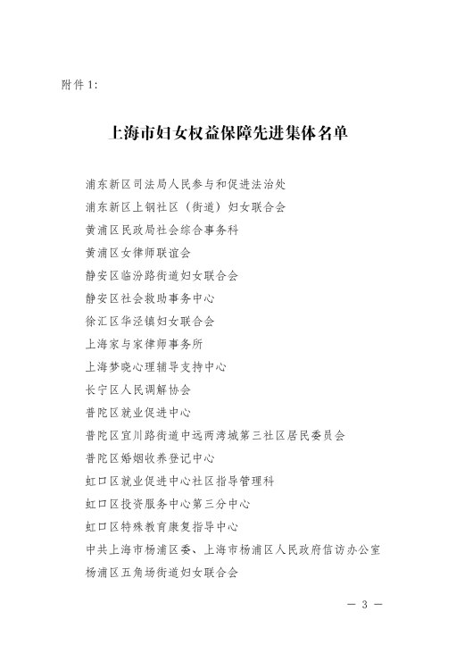 近日,在上海市婦女聯合會、上海市婦女兒童工作委員會辦公室、上海市人力資源和社會保障局主辦的維護婦女兒童權益先進集體和先進個人評選活動中,黃浦區女律師聯誼會獲評“上海市婦女權益保障先進集體”榮譽稱號。