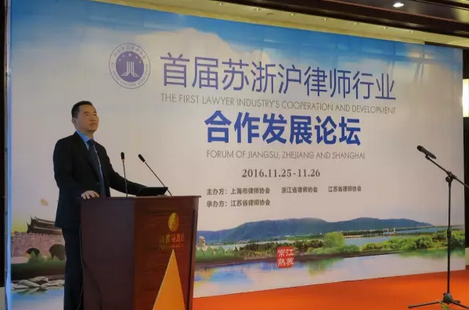 2016年11月26日,由上海、浙江、江蘇三地律協(xié)聯(lián)合主辦、江蘇律協(xié)承辦的首屆蘇浙滬律師行業(yè)合作發(fā)展論壇在常熟舉行,來(lái)自江蘇、浙江、上海、北京的司法機(jī)關(guān)領(lǐng)導(dǎo)和律界人士100多人參加活動(dòng)。上海市司法局副局長(zhǎng)、上海律協(xié)黨委書(shū)記王協(xié)、上海市司法局律管處副處長(zhǎng)、上海律協(xié)黨委副書(shū)記忻峰參加了此次論壇,上海律協(xié)組成16人的律師代表團(tuán),由會(huì)長(zhǎng)俞衛(wèi)鋒、副會(huì)長(zhǎng)管建軍、鄒甫文、潘書(shū)鴻、副秘書(shū)長(zhǎng)陳東、王旭峰等帶隊(duì)參會(huì)。