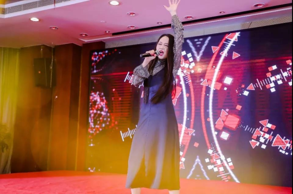 聽過古風,賞過國粹,觀過小品,接下來就欣賞跨越國際的聲音——來自奉賢區的上海理帥律師事務所張乙波律師帶來《Someone like you》的女生獨唱,鏗鏘有力,正如女律師的堅韌與勇氣。悅耳的歌聲仿佛冬日的一股暖流涌上心頭,贏得了臺下陣陣掌聲。