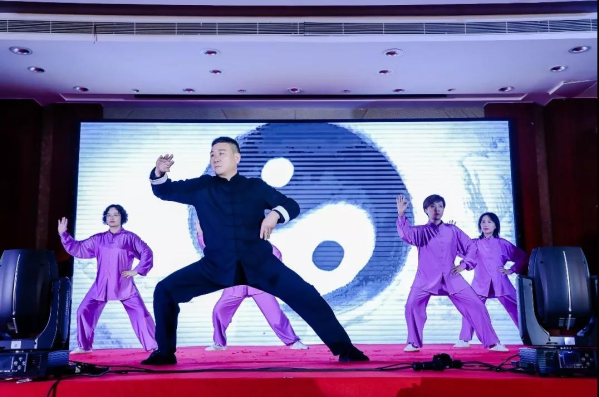 以柔克剛,以靜制動,無形似有形。兩儀分三才,三才顯四象,四象變八卦,此陰陽之理,變化莫測,這是太極拳的精髓。來自普陀區的上海君蒞律師事務所帶來的陳式《太極拳》由李華、任文軍、湯惠瓊、徐珮麗、鄭仰穎等律師共同演繹,連貫而富有神韻,讓在座賓客大開眼界,不由感嘆,律界不乏文武雙全、動靜皆宜之才。
