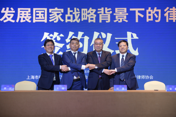 論壇閉幕式上,滬蘇浙皖四地律協共同簽署《長江三角洲區域律師業一體化發展合作框架協議》(以下簡稱“框架協議”)及三個子協議。根據框架協議,將設立長三角律師行業發展研究中心和長三角一體化律師行業聯絡辦公室,發展研究中心及聯絡辦公室常設上海。發展研究中心將加強長三角地區律師對前沿和共性法律問題的研究、探討、交流和互動。