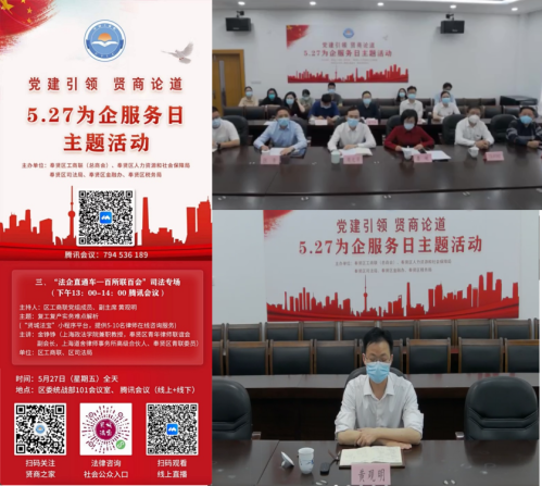 5月27日,為幫助奉賢企業解決因疫情引起的諸多問題,助力奉賢企業復工復產,奉賢區工商聯(總商會)、奉賢區人力資源和社會保障局、奉賢區司法局、奉賢區金融辦、奉賢區稅務局聯合奉賢律工委舉辦在線上舉辦了“黨建引領、賢商論道”5.27為企服務日主題活動。該主題活動涵蓋了金融專場、司法專場、稅務專場。