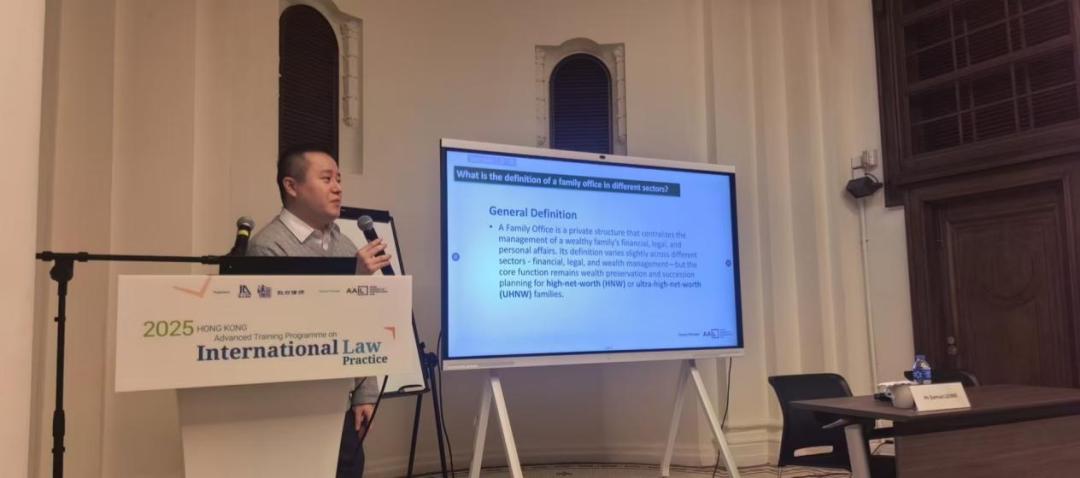 當天培訓的最后,由來自Target International Trustee Limited的Mr. Samuel Leung為參訓學員帶來2022年至2025年間香港家族辦公室政策演變的專題授課,講解香港家族辦公室的發展脈絡、政策框架與實踐要點,為律師拓展跨境財富管理法律服務提供了方向。