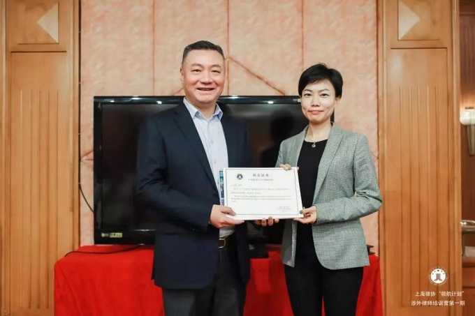 上海市律師協會外事委員會副主任史軍在發言中表示,上海律協為第一期做了充分的準備工作,很榮幸有機會能夠和各位學員共同參加培訓。非常感謝各位講師的辛苦教學及秘書處工作人員的全力支持與配合。祝賀各位學員完成全部培訓,順利結業。希望學員們結業后仍然保持繼續學習的習慣。