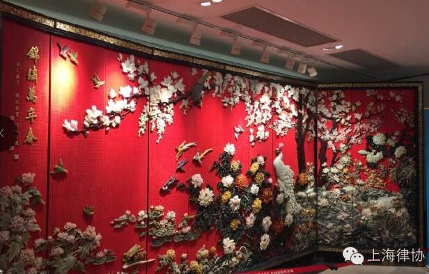 第二部分是參觀活動。朵云軒電子商務有限公司副總經理傅海英帶領律師們詳細參觀了在藝術中心參展的非遺作品,為大家一一詳細介紹了織造技術、顧繡、玉雕、竹刻等各個系列作品的歷史沿革、精細工藝以及創(chuàng)作它們的大家,讓參觀的各位更加深入地體驗和了解中國的非物質文化遺產,體會我國深厚的文化底蘊。