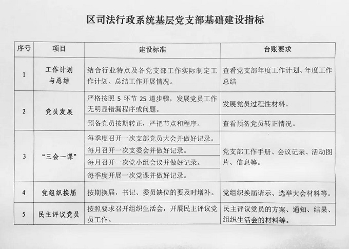 一是做好頂層設計,夯實黨建基礎。進一步完善管理體制機制,研究并制定了雙月黨建工作提示、基層黨支部書記培訓等工作制度,創設“1+1+X”基層黨建工作機制,即1:一套指標;1:一個黨建品牌——律政先鋒佑睦鄰;X:一個自選特色項目。牢牢抓住基層黨支部基礎建設指標這一根本開展年度考評,持續發揮和拓展“律政先鋒佑睦鄰”黨建品牌優勢,結合行業特點和各黨支部自身實際設計特色黨建活動或項目,以“規定動作+自選動作”的黨建工作模式,充分發揮基層黨組織戰斗堡壘作用,促進黨建與行業的互聯互動。