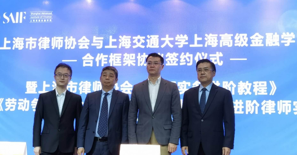 上海律協副會長楊波代表上海律協與上海交通大學高級金融學院簽訂合作框架協議。