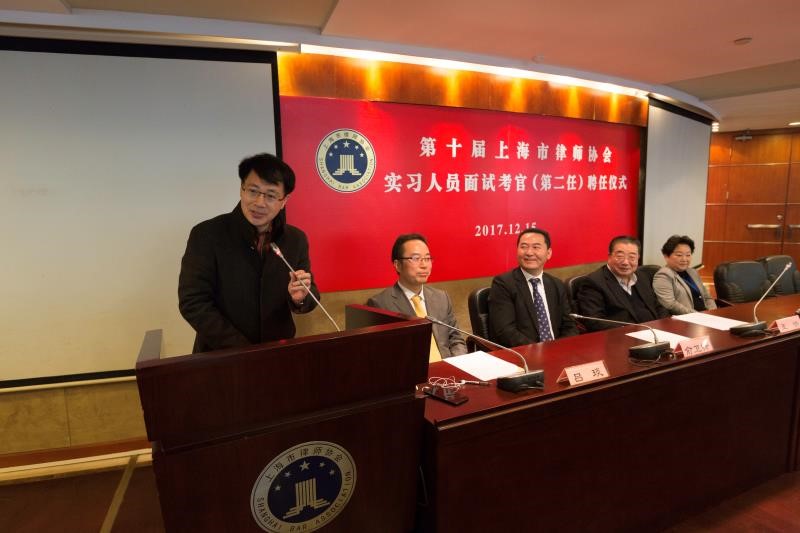 繼2015年舉行本屆第一任考官聘任儀式后,經(jīng)過(guò)兩年的完善調(diào)整,在充分醞釀和廣泛征求意見(jiàn)后,上海律協(xié)于2017年12月15日,在35樓報(bào)告廳舉行了本屆第二任實(shí)習(xí)人員面試考官聘任儀式。上海市司法局副局長(zhǎng)王協(xié)、市律協(xié)會(huì)長(zhǎng)俞衛(wèi)鋒、副會(huì)長(zhǎng)兼考核委主任呂琰、副秘書(shū)長(zhǎng)陳東出席儀式。
