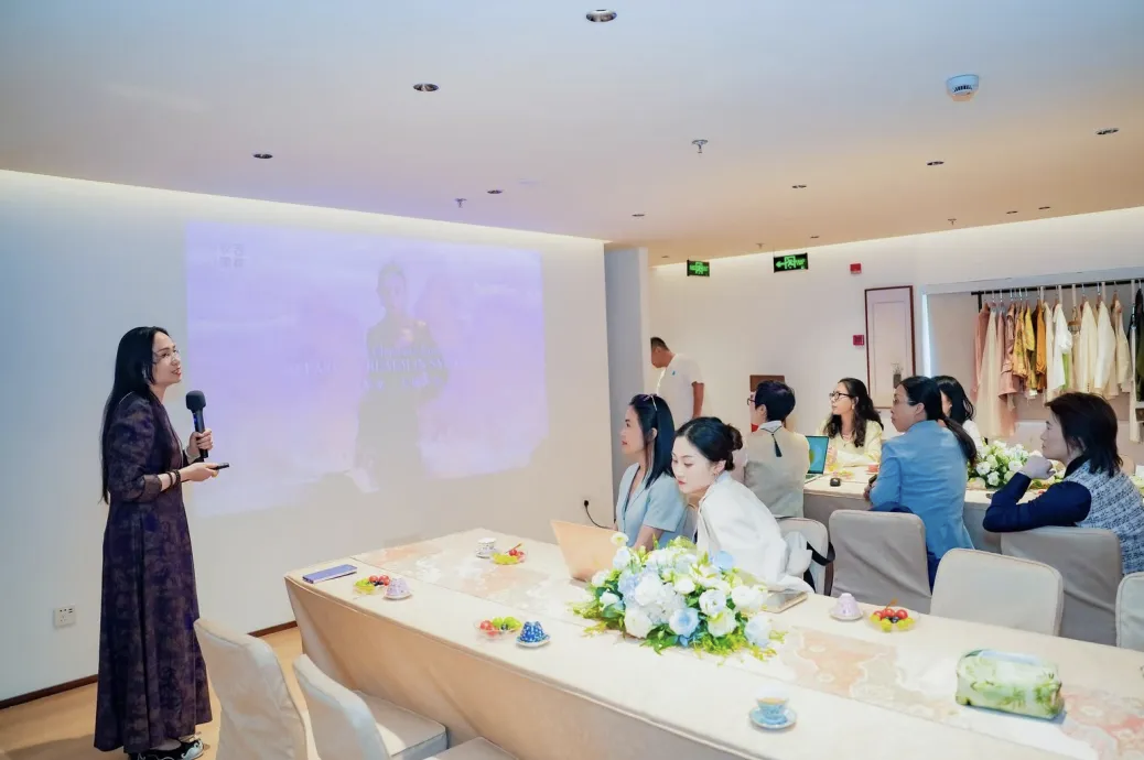 活動伊始,相生衣家的專業(yè)品牌設(shè)計師深入淺出地講解了“五行與穿衣技巧搭配”。設(shè)計師結(jié)合五行學說中木、火、土、金、水的特性,與色彩、材質(zhì)及圖案的對應(yīng)關(guān)系,為參與者展示了如何通過傳統(tǒng)智慧與現(xiàn)代時尚的結(jié)合,打造個人風格并增強自信。她強調(diào),五行不僅僅是抽象的概念,更是日常生活中可以應(yīng)用的實用法則,例如通過綠色長衫搭配紅色瑪瑙耳環(huán),體現(xiàn)木生火的活力與熱情。參與者還在活動中試穿服裝,并由專業(yè)攝影師拍攝展示照片,體驗“東方自信之美”。