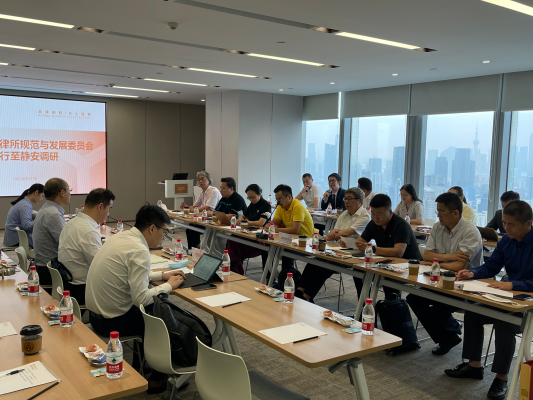 8月31日下午,市律協律所規范與發展委員會副主任馮加慶一行到靜安律工委走訪調研,靜安律工委主任王昊東、副主任李舉東、多位律工委委員代表和區內律所代表出席此次調研。
