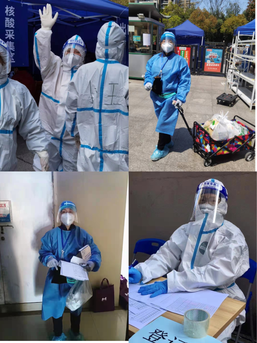 為了有效遏制疫情的傳播,不少小區都逐步進入了封閉式管理模式。與2020年突發的疫情不同,這次備足了更先進的檢測工具及方式,核酸檢測、抗原檢測成了每個人的“家常便飯”。同時,基于足不出戶的居家模式,人們通過買菜軟件及社區團購補給物資的情況顯現,社區需要更多的志愿者來協助社區基層工作者共同維護社區秩序,因此,黃浦女律師們便化身“大白”或者“小藍”,投身公益志愿者服務。