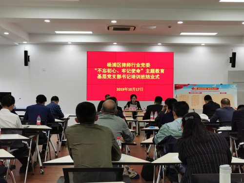 為貫徹落實中央、市委和區委、市律師行業黨委關于“不忘初心、牢記使命”主題教育的部署和要求,扎扎實實將主題教育引向深入,堅持不懈強化理論武裝,持續深入學習貫徹習近平新時代中國特色社會主義思想,楊浦區律師行業黨委于9月底及10月中旬舉辦了“不忘初心,牢記使命”律師行業基層黨支部書記培訓班,經過5個半天的集中學習,于10月17日圓滿結業。