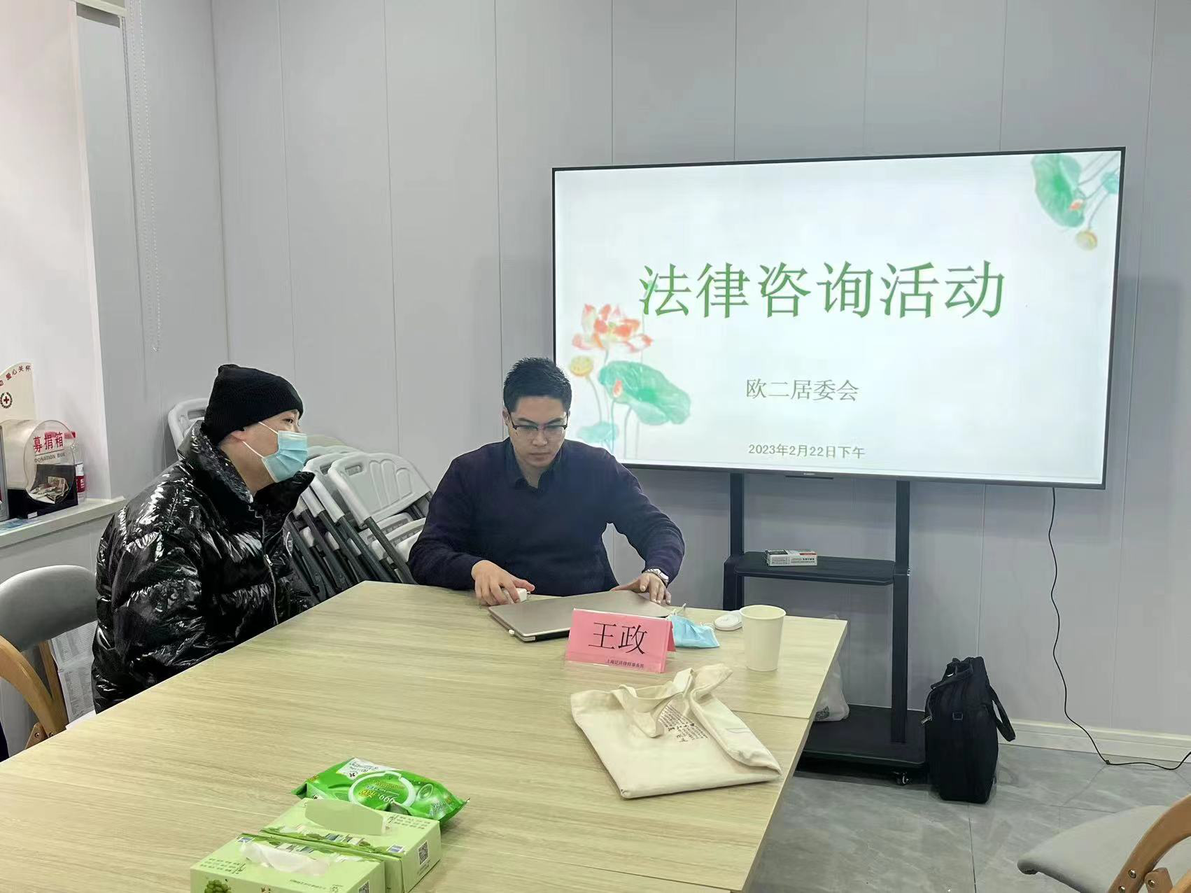 一、上海泛洋律師事務所律師前往虹口歐二居委會,為社區居民提供公益法律咨詢服務。