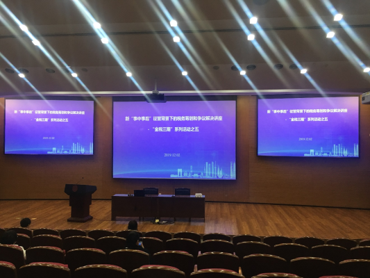 2019年12月2日至3日,由上海律協資產管理與財務委員會、律師學院、稅法業務研究委員會聯合主辦的“新‘事中事后’征管背景下的稅務籌劃和爭議解決講座-‘金稅三期’系列活動之五”主題講座在交通大學(徐匯校區)凱原法學院二樓東方會堂舉行。