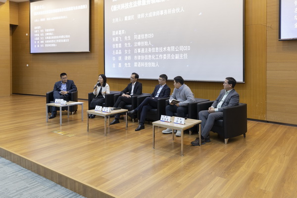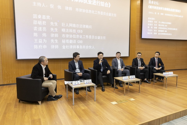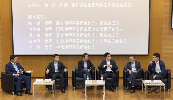 兩位嘉賓的主題發(fā)言環(huán)節(jié)后,進(jìn)行了三場別開生面的圓桌討論會。第一場的圓桌會,由市律協(xié)信息化工作委員會委員徐沫律師主持,圓桌嘉賓均來自本市在律師行業(yè)信息化建設(shè)方面頗有心得的律師代表:市律協(xié)信息化工作委員會主任、上海市通力律師事務(wù)所合伙人陳巍律師、國浩律師(上海)事務(wù)所合伙人倪俊驥律師、 君合律師事務(wù)所上海分所合伙人周輝律師、北京市中倫(上海)律師事務(wù)所合伙人高俊律師、上海市方達(dá)律師事務(wù)所合伙人馬凌君律師。討論圍繞《新興科技與行業(yè)發(fā)展、事務(wù)所管理》展開,各位嘉賓結(jié)合自身實踐分享自身的經(jīng)驗、觀點和見解,交流行業(yè)普遍關(guān)注的實際需求。