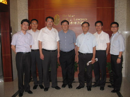 中國國際經濟貿易仲裁委員會上海分會聞萬里秘書長、黃文副秘書長和姚宏敏科長一行于2012年9月7日蒞臨上海市金茂律師事務所。