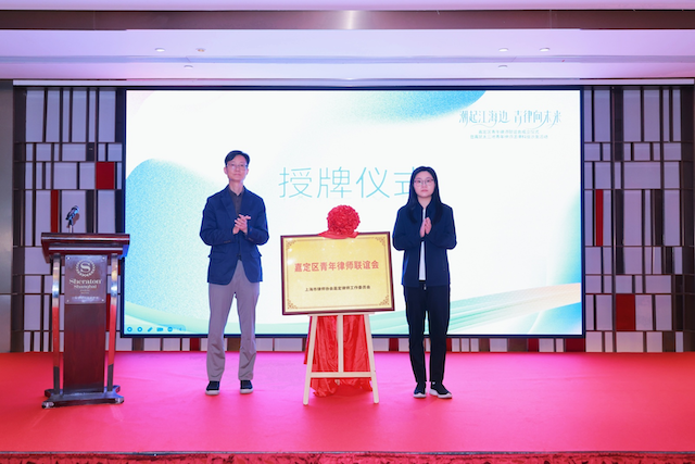 在全體嘉賓的見證下,嘉定區團委副書記王夢云與區司法局四級調研員張磊共同為“嘉定區青年律師聯誼會”揭牌。紅綢揭開的,不僅是牌匾,更是嘉定青年律師團結協作、攜手奮進的新篇章。
