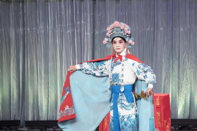 隨后,施奇律師登臺(tái),前幾次演出均唱旦角戲的他,這次改唱了老生《三家店》選段,節(jié)奏明快,行腔自如,讓人耳目一新。而接演的凌琳律師則將演唱會(huì)帶至了一個(gè)小高潮。專業(yè)世家出身的她這次不演唱功戲,而是以一折八分鐘的刀馬旦《十三妹-趲路》應(yīng)工。紅束腰、紅風(fēng)貌、紅薄底鞋,斜挎彈袋、背弓、刀,一口動(dòng)聽的“京韻白”,整個(gè)一副紅紅火火的俠女形象躍然于臺(tái)上,顯示出一位資深票友的豐厚的藝術(shù)修養(yǎng)。