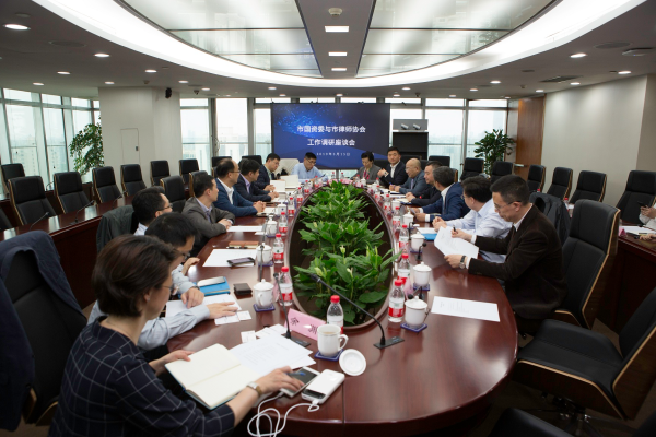 2019年5月15日下午,市國(guó)資委副主任程巍帶隊(duì),市國(guó)資委政策法規(guī)處處長(zhǎng)鐘可慰、副處長(zhǎng)詹浩、副調(diào)研員杭治兵以及國(guó)盛集團(tuán)、城投集團(tuán)、上汽集團(tuán)、上實(shí)集團(tuán)、浦發(fā)銀行、儀電集團(tuán)等企業(yè)法務(wù)部負(fù)責(zé)人等一行赴市律協(xié)調(diào)研座談。市律協(xié)會(huì)長(zhǎng)季諾,監(jiān)事長(zhǎng)張鵬峰,副會(huì)長(zhǎng)朱林海、鄒甫文、林東品、曹志龍、徐培龍,市司法局律師工作處副處長(zhǎng)忻峰,市律協(xié)副秘書長(zhǎng)潘瑜,國(guó)資國(guó)企業(yè)務(wù)研究委員會(huì)主任洪亮、破產(chǎn)清算業(yè)務(wù)研究委員會(huì)主任陳明夏等參加,會(huì)議在律協(xié)第一會(huì)議室舉行。