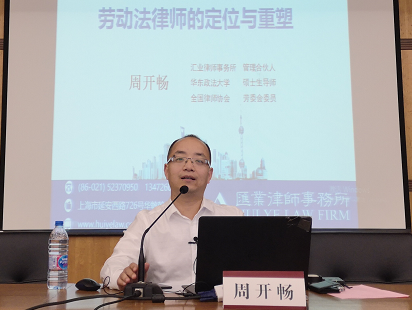 周開暢律師進行了“勞動法律師的定位與重塑”的講座,從勞動法律師的定位到如今“互聯網+”的時代背景下勞動法律師的重塑,闡述了供給側改革下律師業務的縱向服務與橫向服務要點,最后落腳于律師服務的未來,強調了深度、跨界與科技等關鍵詞。