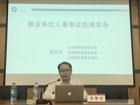 李華平律師就“事業單位人事爭議糾紛處理實務”為題,分別從事業單位在編人員、非在編人員的法律適用,聘用合同的訂立與解除與勞動合同的區別,事業單位人員的崗位、報酬、考核與獎懲管理以及人事爭議與勞動爭議案件實體處理的差異比較等四個方面講解了事業單位中的人事爭議糾紛處理的要點。