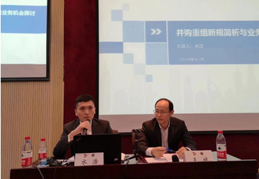 下午第一場由國泰君安投行部助理董事、準保薦代表人水浩以“并購重組新規簡析與業務機會探討”為主題進行了講座,詳細地分析了上市公司并購重組的監管框架、操作流程和審核情況,同時也對再融資、并購重組等新規的出臺進行了介紹與解讀。