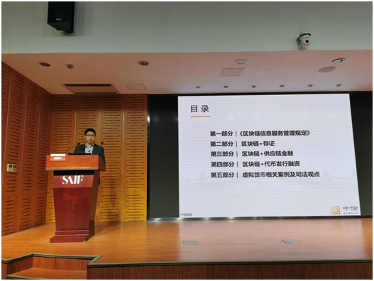 上海市律師協會互聯網業務研究委員會委員、中倫律師事務所合伙人劉新宇律師以《區塊鏈監管與司法實踐》為題,向與會律師分析了《區塊鏈信息服務管理規定》的立法背景,并就區塊鏈+存證、區塊鏈+供應鏈金融、區塊鏈+代幣發行融資領域中存在的法律問題闡述了其獨到見解,最后劉律師還向與會律師講授了虛擬貨幣相關案例及其司法觀點。