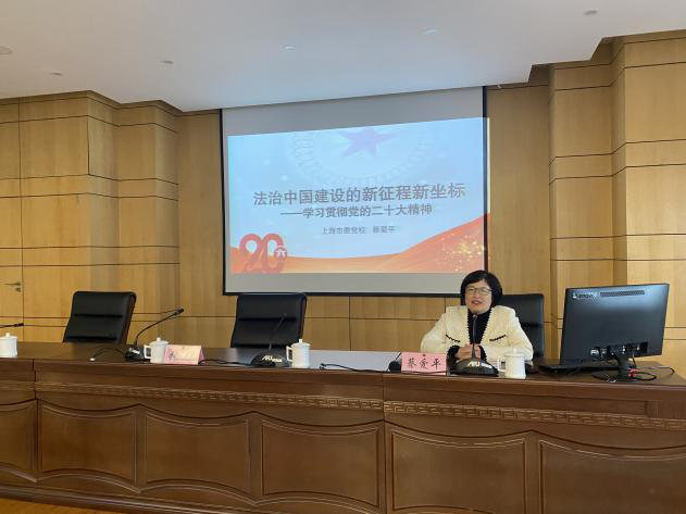 培訓(xùn)班邀請(qǐng)上海市委黨校蔡愛平副教授,以法治中國建設(shè)的新征程新坐標(biāo)為主題解讀了二十大法治精神。蔡教授圍繞法治中國建設(shè)踏上新征程、在法治軌道上全面建設(shè)社會(huì)主義現(xiàn)代化國家、開創(chuàng)法治中國建設(shè)新局面等3個(gè)方面系統(tǒng)闡述了二十大習(xí)近平法治思想的內(nèi)容。