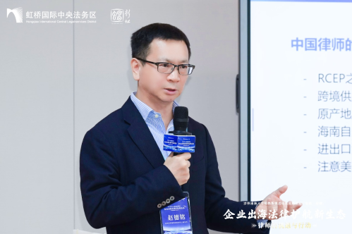 北京市環球律師事務所上海分所合伙人、華東政法大學涉外法治學院兼職教授趙德銘在主題為《RCEP 2.0與中美貿易戰——跨境供應鏈法律服務的機遇與挑戰》的分享中指出,RCEP自2022年生效以來,已覆蓋15個成員國,經濟體量占全球GDP的27.5%,區域內中間品貿易占比上升至66%,供應鏈一體化趨勢顯著。