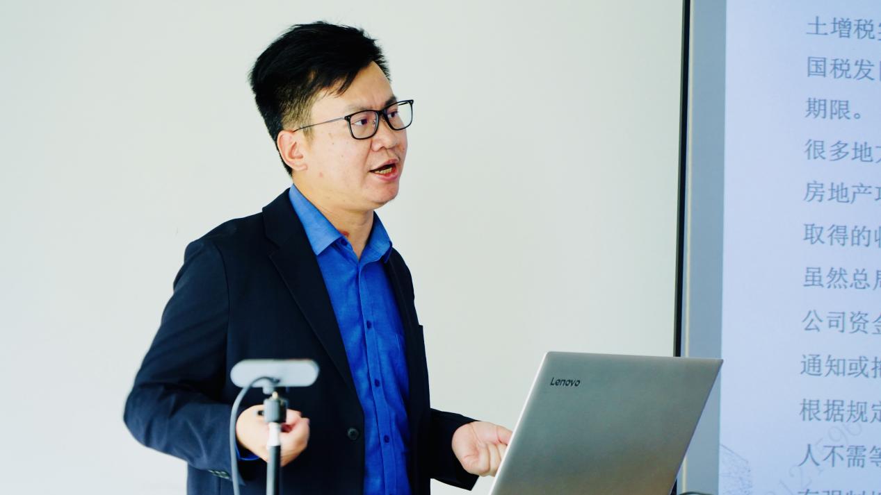 隨后,主講人聚焦案例,對房地產企業(yè)在增值稅、土地增值稅和企業(yè)所得稅等關鍵稅種上的多個熱點爭議問題展開深度解讀。他條分縷析地剖析了房地產企業(yè)增值稅、土地增值稅和企業(yè)所得稅超稅負預繳這一常見難題,深入探討了土地增值稅清算單位和成本對象認定引發(fā)的爭議,對土地出讓合同中不同類型房地產地價分攤約定的稅務處理進行細致講解,還針對地下車位、配建保障房涉稅處理爭議,利息相關增值稅和土地增值稅涉稅爭議,購入在建項目再開發(fā)能否加計扣除、新舊房劃分涉稅問題,以及股權收并購中的溢價涉稅處理等復雜問題,結合實際案例逐一拆解,為參會者撥開迷霧。