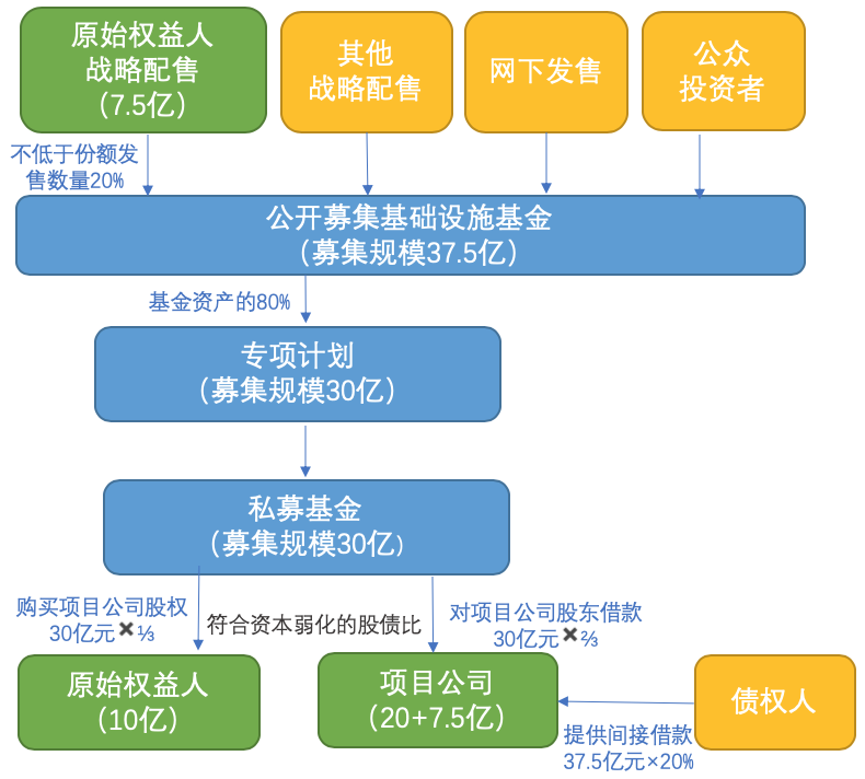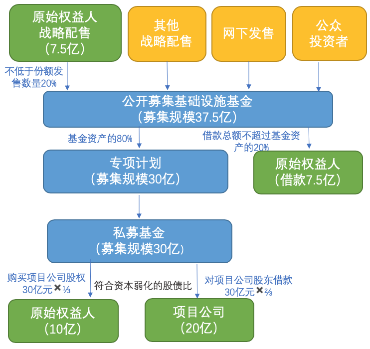 (3)根據戰略配售要求,原始權益人以其自有資金購買公募基金20%份額,即7.5億元。