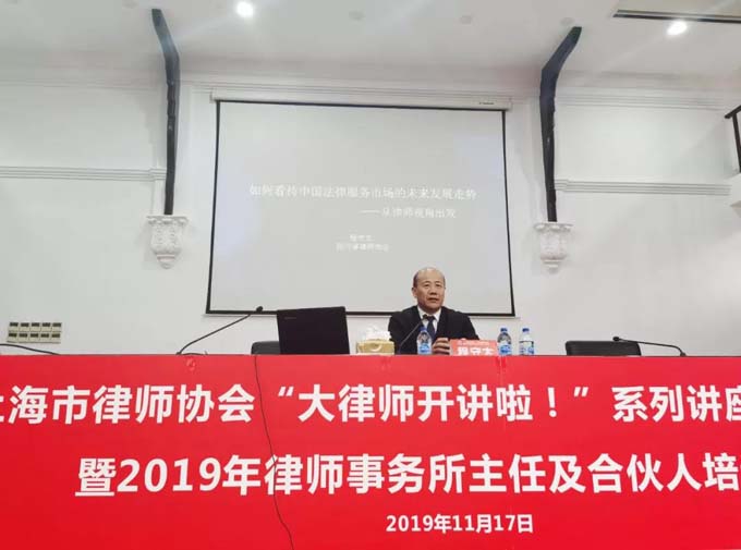 程守太會長作為主講人,他為上海律師介紹“中國法律市場的未來發展走勢”。他指出,律所“做大”是外顯,“做強”是質變,“大”不一定“強”,但“不大”一定不強,先“做大”,后“做強”,最后“做長”是一條符合邏輯的發展路徑。