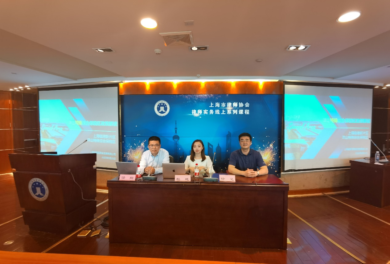 2020年6月23日下午,上海律協國際貿易業務研究委員會在律協報告廳舉辦了“洋山特殊綜合保稅區政策解讀”講座,本次講座由上海自貿區聯合發展有限公司營銷服務中心副總經理任翔先生主講,上海律協國際貿易業務研究委員會委員杜越律師主持,上海律協國際貿易業務研究委員會主任徐堅律師作為點評嘉賓出席講座。講座通過線上直播方式向全市律師公開,同時上海律協國際貿易業務研究委員會有19位委員現場參加了本次講座。