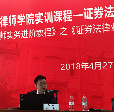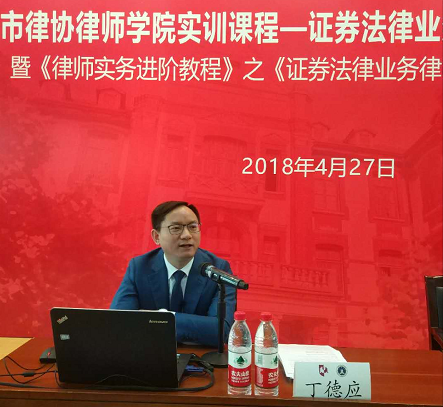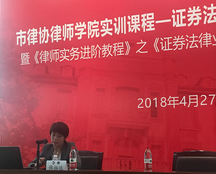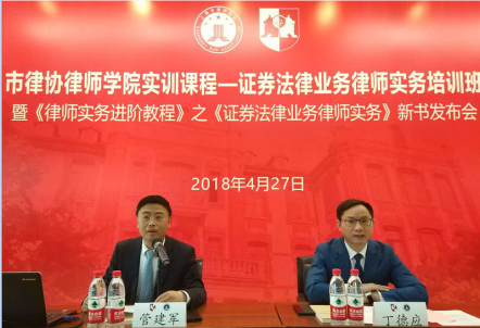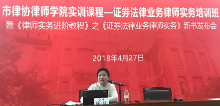 2018年4月27日,市律協律師學院聯合證券業務研究委員會共同舉辦的證券法律業務律師實務培訓班暨《律師實務進階教程》之《證券法律業務律師實務》新書發布會在交通大學凱原法學院二樓東方會堂舉行。