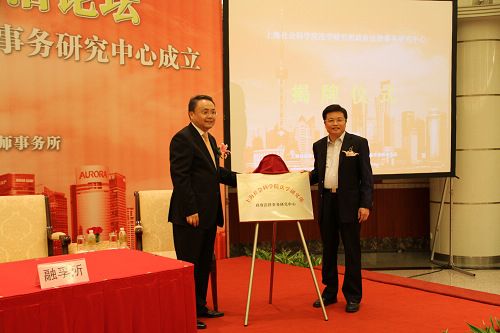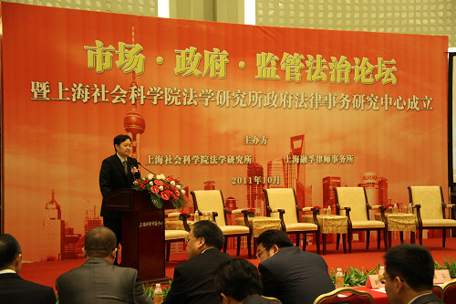 2011年10月31日,上海社科院法學所與融孚律師事務所在國際會議中心舉行共建“政府法律事務研究中心”簽約儀式和“中心”揭牌儀式。中心將聚集專家、學者、政府領導、大型企業高管、律師等開展以完善市場體系中的政府依法行政、公共政策制訂與評價、國資監管、市場監管、律師作為第三方提供服務、大型公共項目建設、運營等課題進行研究。儀式結束舉行的“市場·政府·監管法治論壇”,來自社科院、華政和美國律所與融孚所的專家、學者、律師發表了政府對金融市場監管的演講和研討,150余名政府工作人員、金融機構人員、律師、學者、媒體記者等出席。