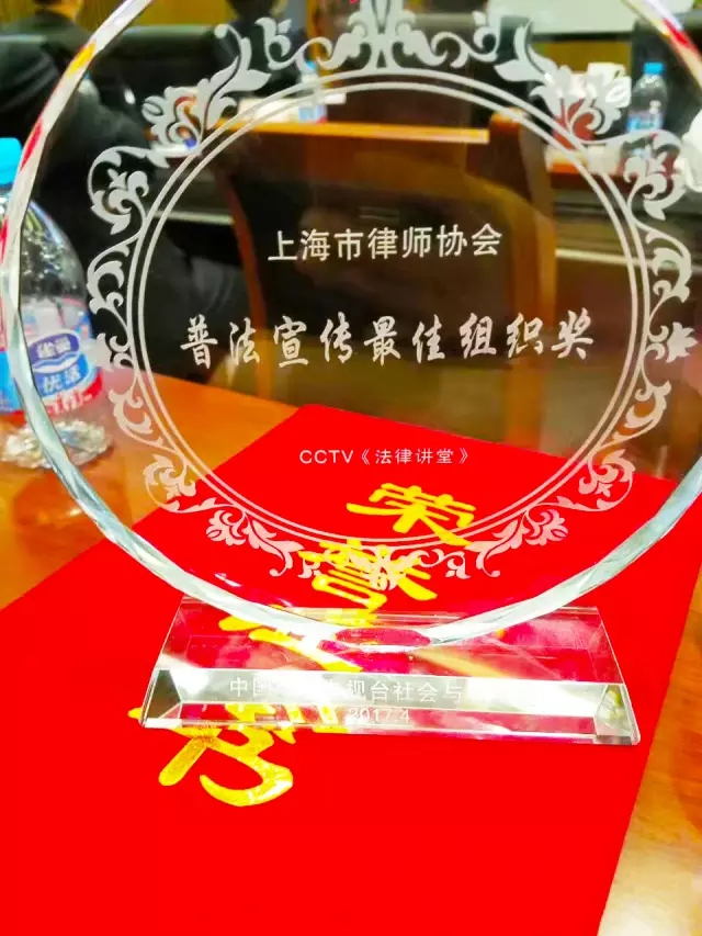 在《法律講堂》2016年度表彰環節,上海市律師協會榮獲《法律講堂》“普法宣傳最佳組織獎”。欄目主講人楊波律師獲得“年度最高收視率獎”、“年度最高出鏡獎”2個個人獎項,郝紅穎律師獲得“最佳撰稿獎”,應朝陽律師獲得“最佳進步獎”,嚴嫣律師獲得“公益普法貢獻獎”。隨后,楊波律師也作為優秀主講人代表之一在大會發言。