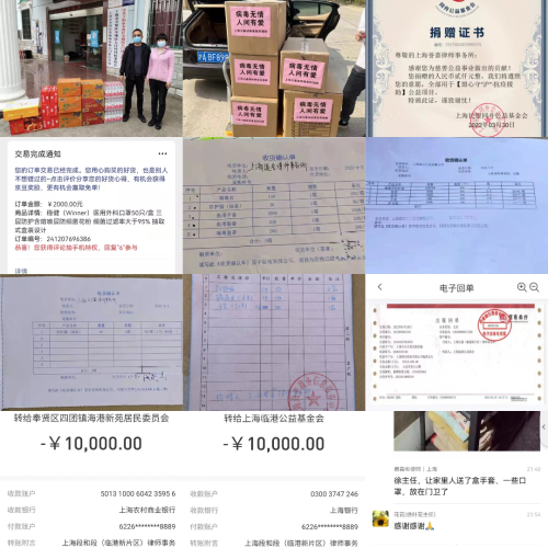 為支持疫情防控工作,全區律所在做好法律服務的同時,向抗疫一線共捐贈近2.5萬余只醫用口罩,近千件隔離衣、防護服,為疫情防控提供了物質支持。另外,還有律師響應上海市慈善基金會和市女律協的倡議,積極捐款,用于幫助抗疫工作。