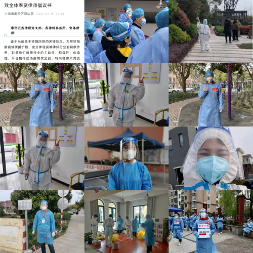 當前,疫情防控進入關鍵階段,時時刻刻牽動人心。為遏制疫情擴散蔓延勢頭,社會各界紛紛投入到疫情防控阻擊戰中,在不同崗位上貢獻著自己的力量。在區司法局黨委的領導下和區律師行業黨委、區律工委的組織發動下,奉賢廣大律師和律所工作人員挺身而出、勇擔重任,投身疫情防控第一線,散發自己的光與熱。除了沖鋒在前、志愿服務,他們還捐款捐物、建言獻策,為抗疫工作提供后方支持,全面展現了法律人的責任與擔當。