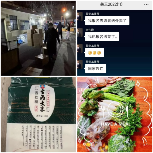 律師主動了解社區居民生活物資需求,積極聯系農場,協調居委及運輸車輛,為所在小區的居民訂購了平價生活物資,解決居民尤其是老年人的“燃眉之急”。同時,律師積極參與群眾生活物資的配送,為大家提供基本的生活物資保障,律師身體力行,以實際行動守“滬”這座城。